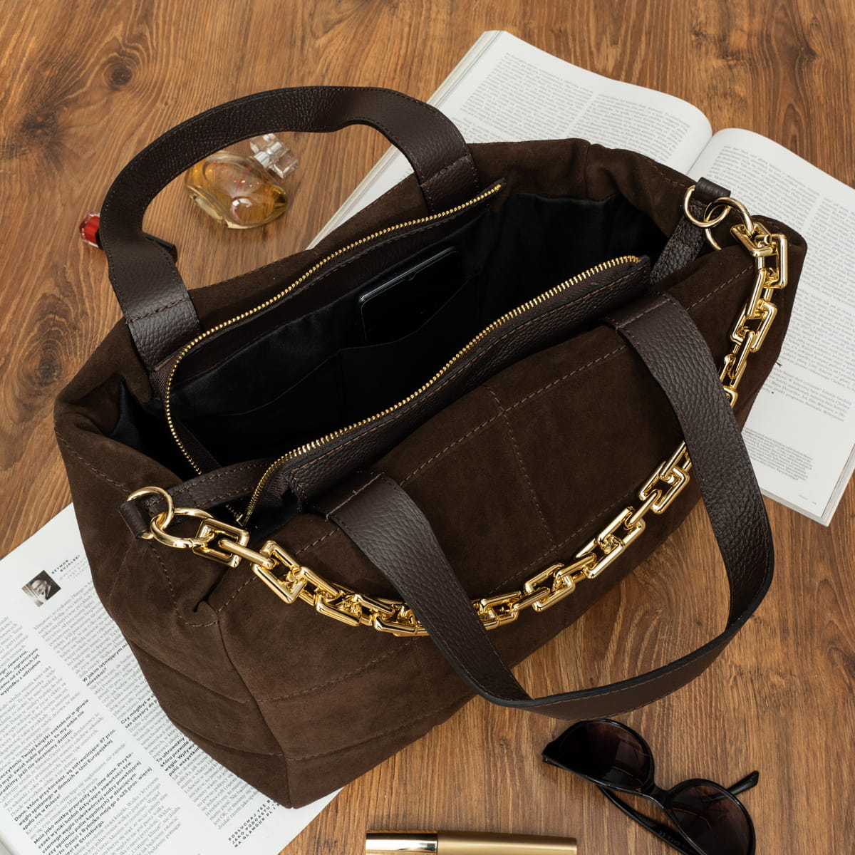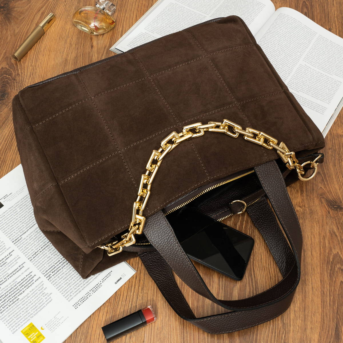 Torebka Zamszowa Vezze Piatto Grande Choco-VEZ023-DBRN