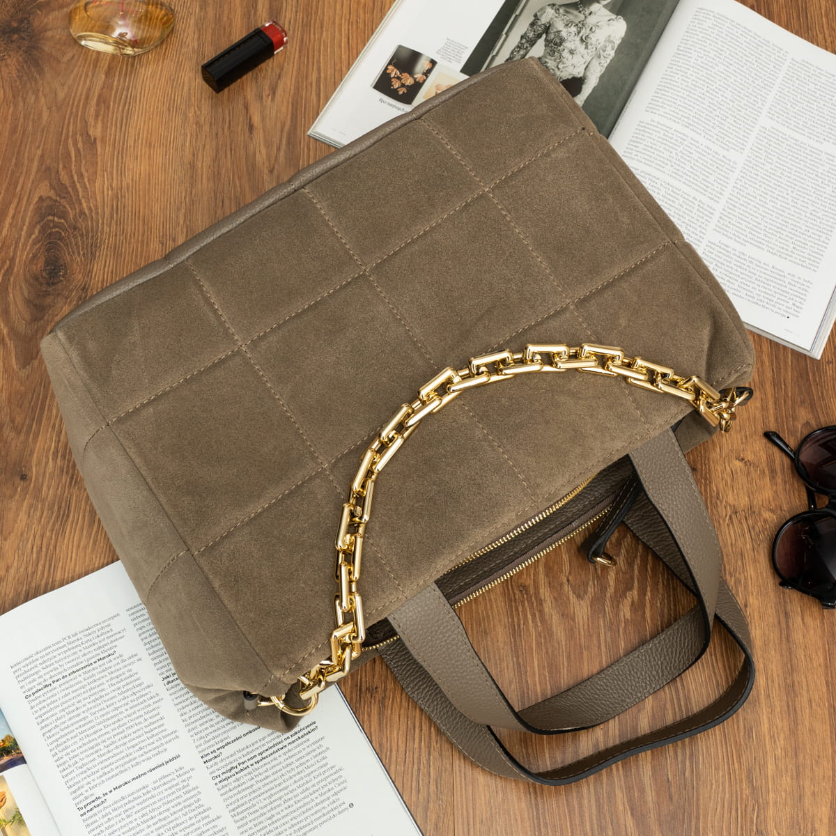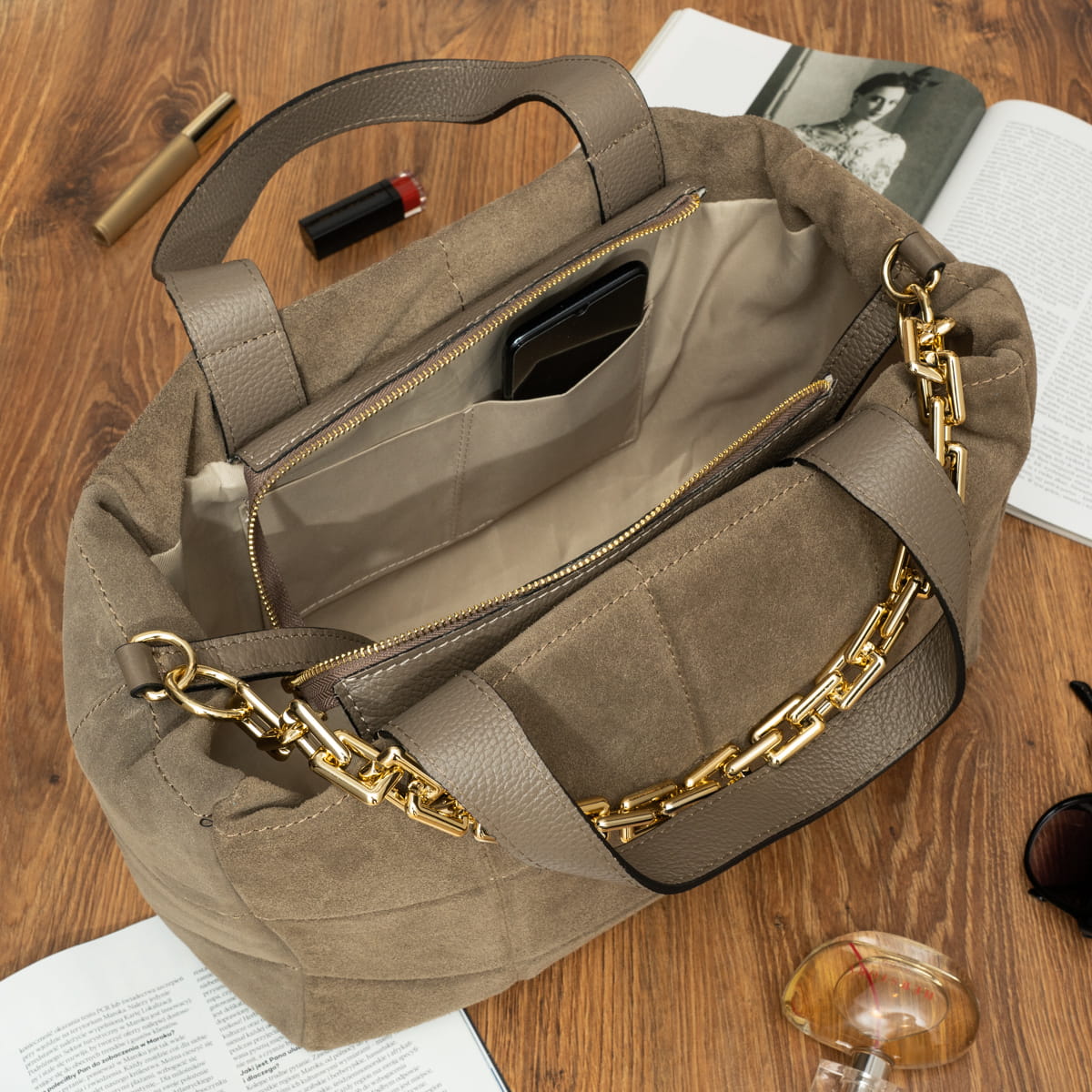 Torebka Zamszowa Vezze Piatto Grande Taupe-VEZ023-T