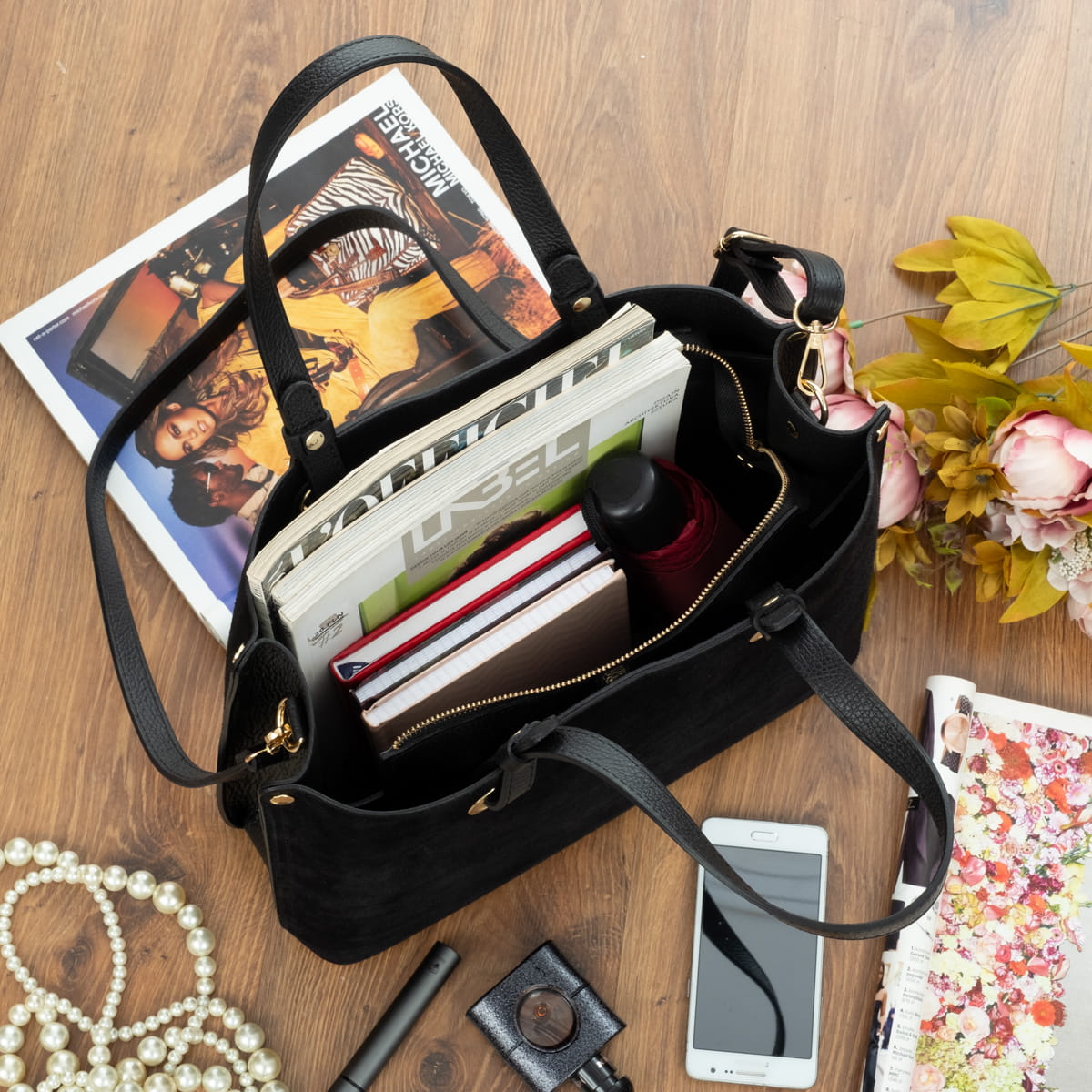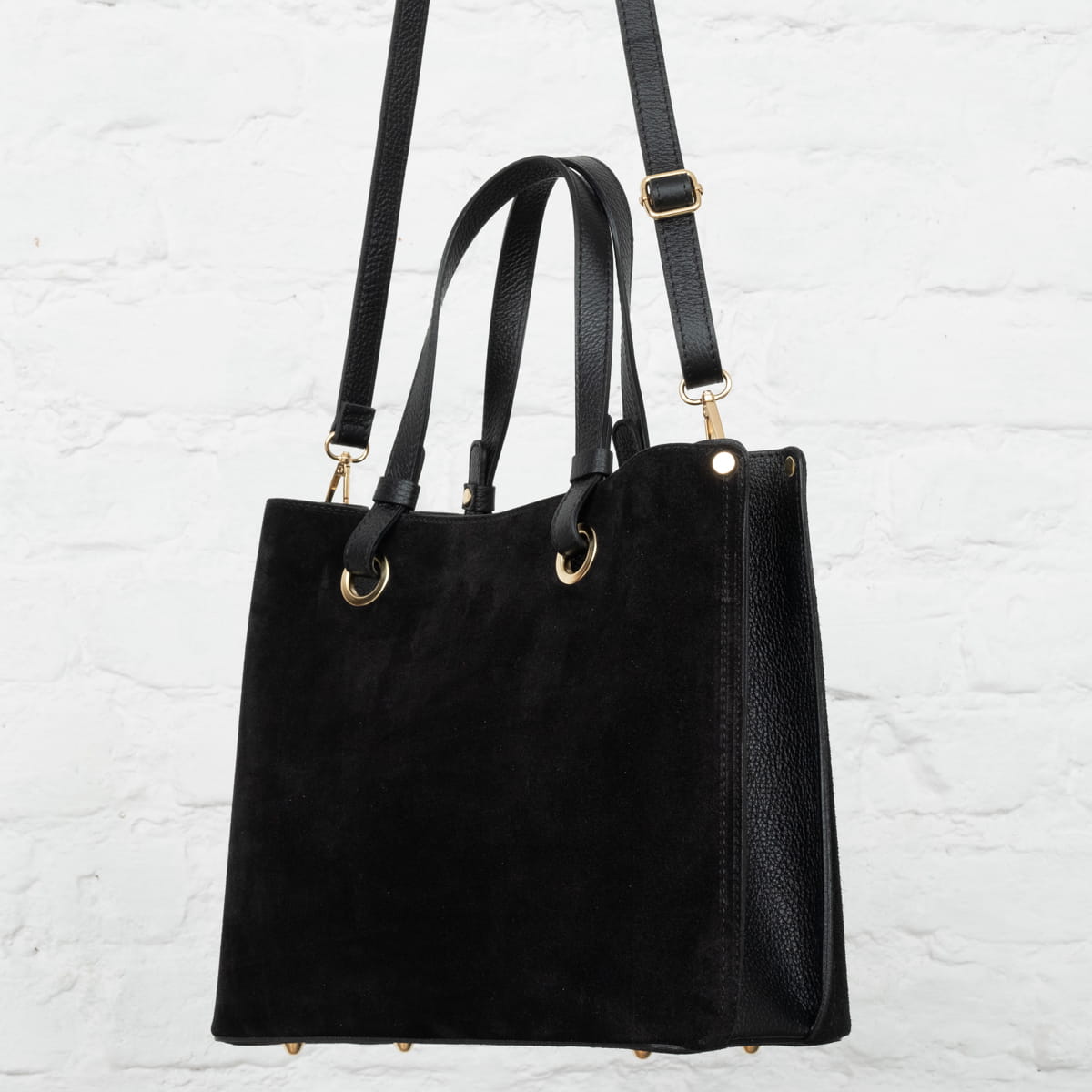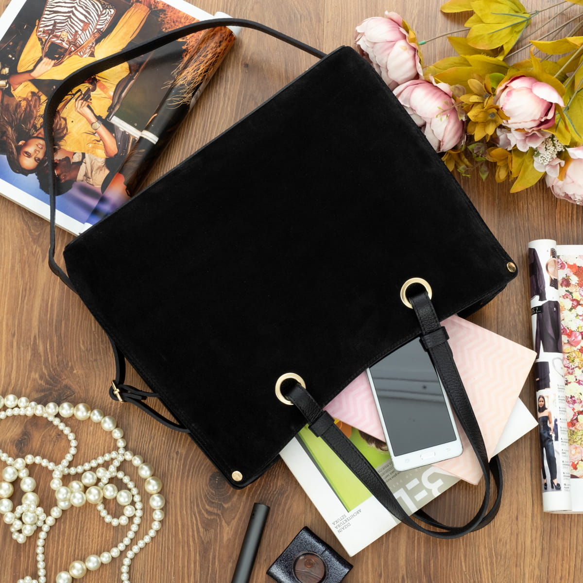 Torebka Zamszowa Vezze Ventura Grande Vello Czarna-VEZ082-B