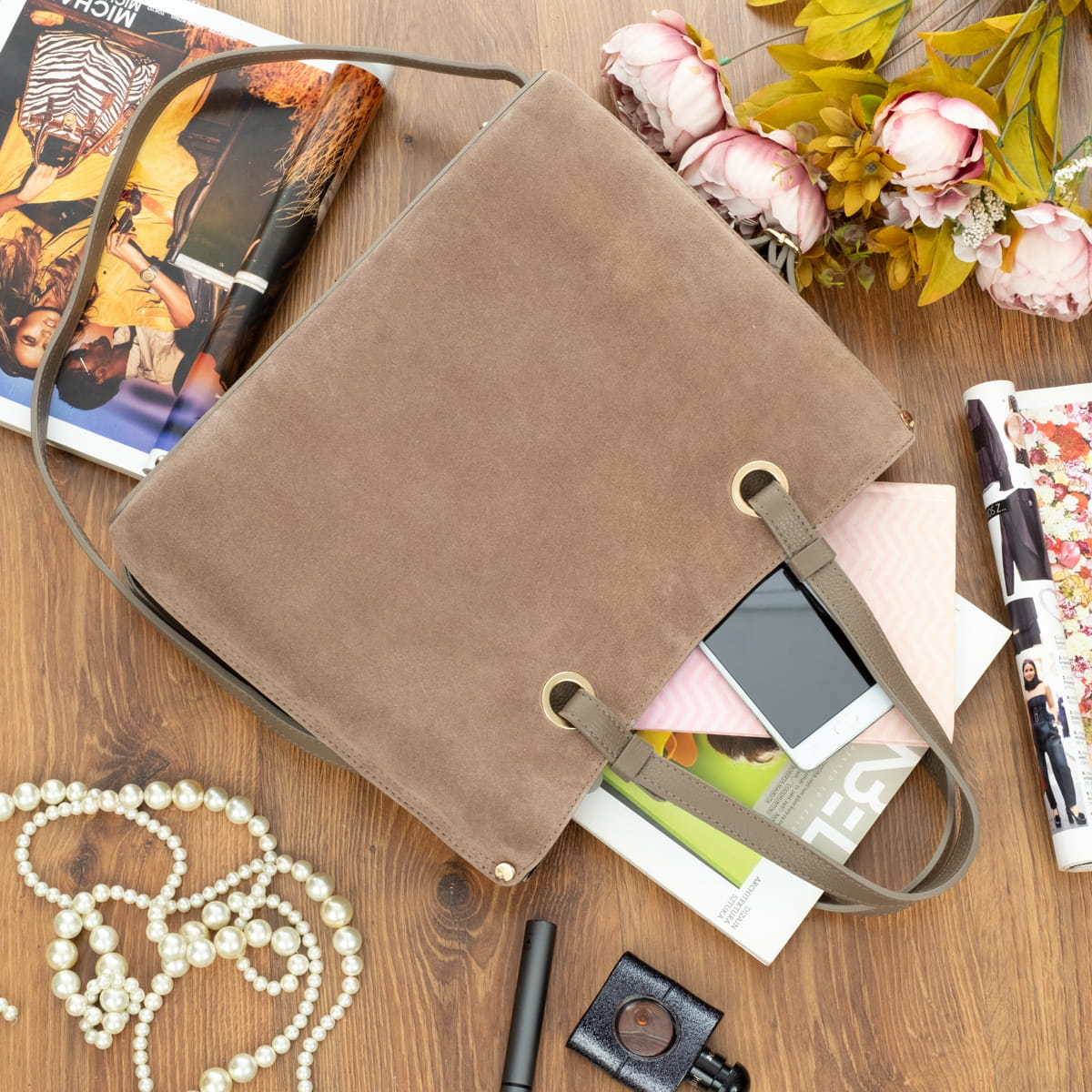 Torebka Zamszowa Vezze Ventura Grande Vello Taupe-VEZ082-T