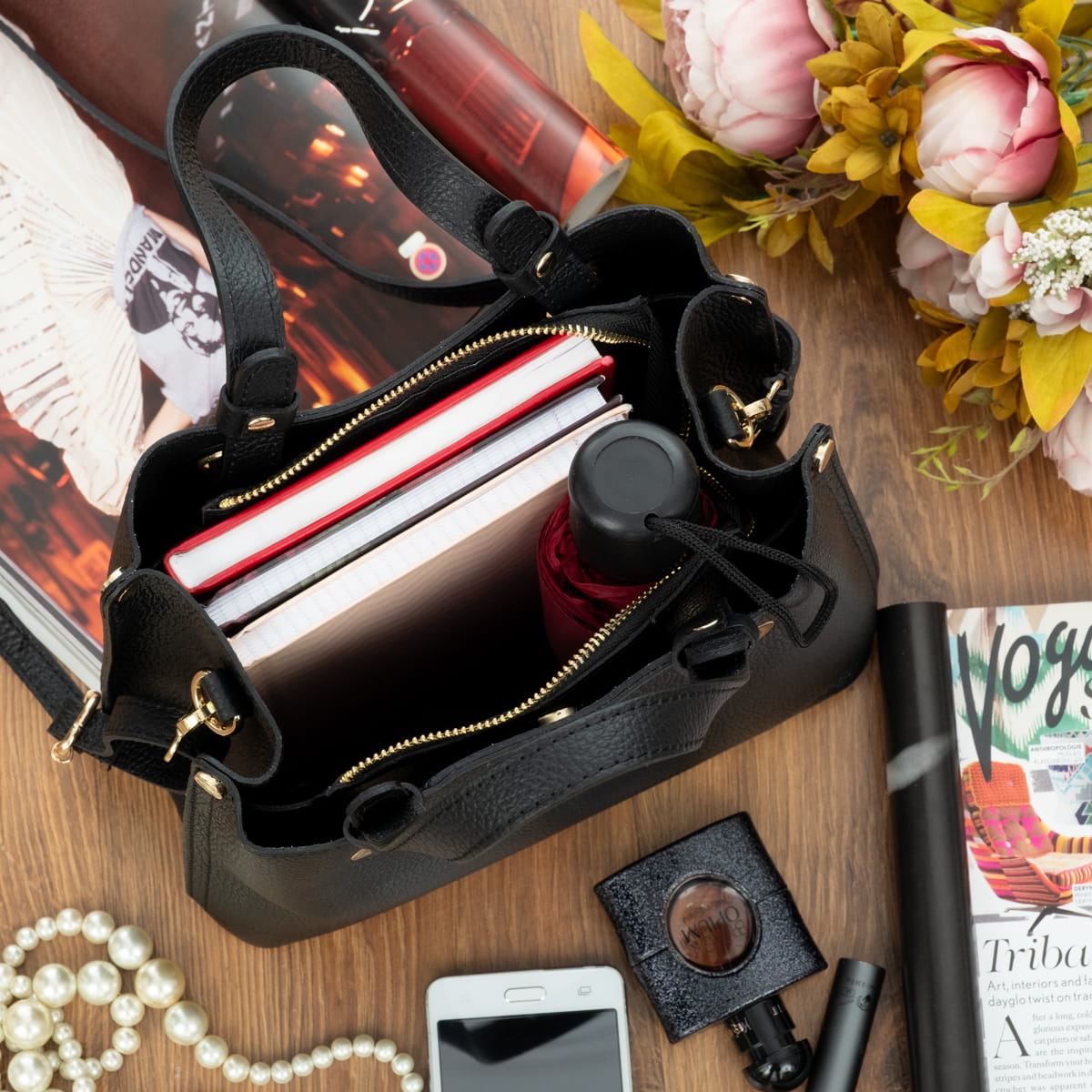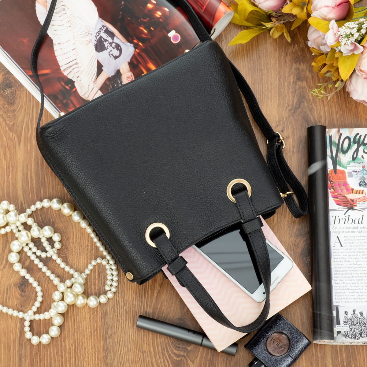 Torebka z Rączkami Skórzana Vera Pelle Ventura Czarna-VPL0005-B