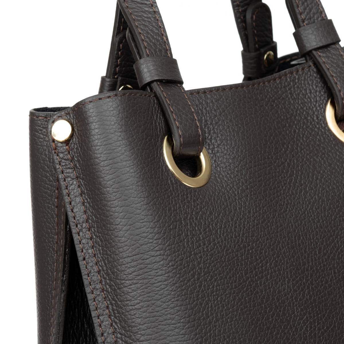 Torebka z Rączkami Skórzana Vera Pelle Ventura Hebanowa-VPL0005-DBRN